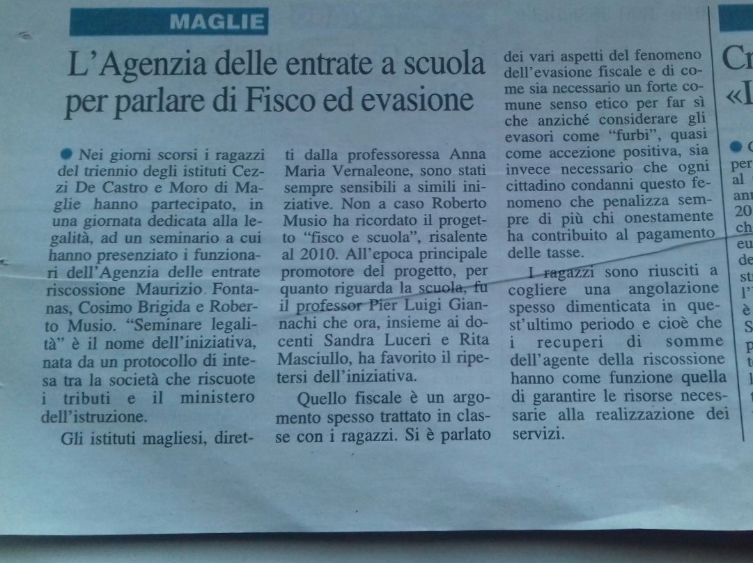 MAGLIE – Il Liceo Capece sarà protagonista sulla scena nazionale per la realizzazione di uno speciale di Rai- Scuola sul progetto/concorso “Dalle aule parlamentari alle aule di scuola. Lezioni di Costituzione”....